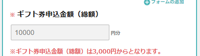 フォームには、ギフト券の種類や金額、名前、電話番号、メールアドレスなどの基本情報を入力していきます。