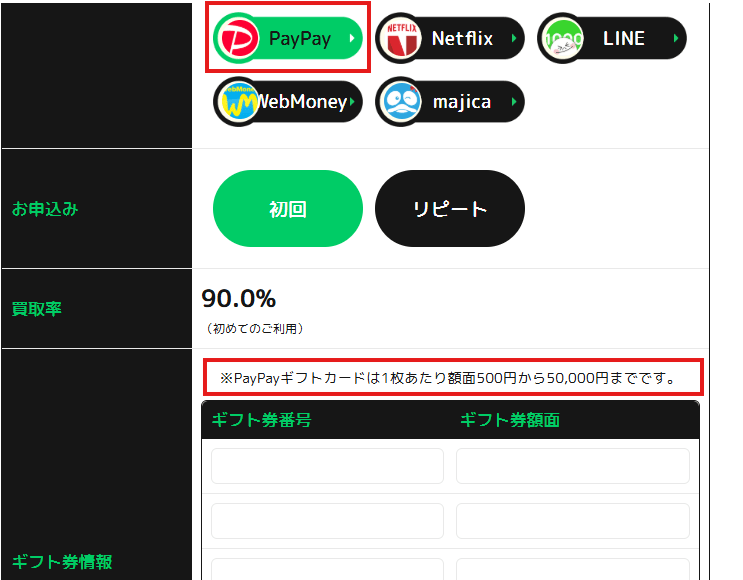 PayPayのマークはありますが、あくまで「PayPayギフトカード」の買取です。