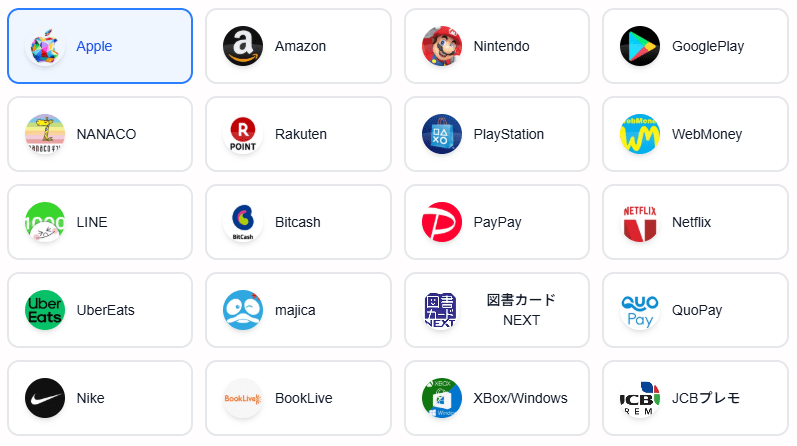 ![]() Amazonギフトカード | 83% | 最短30分 |